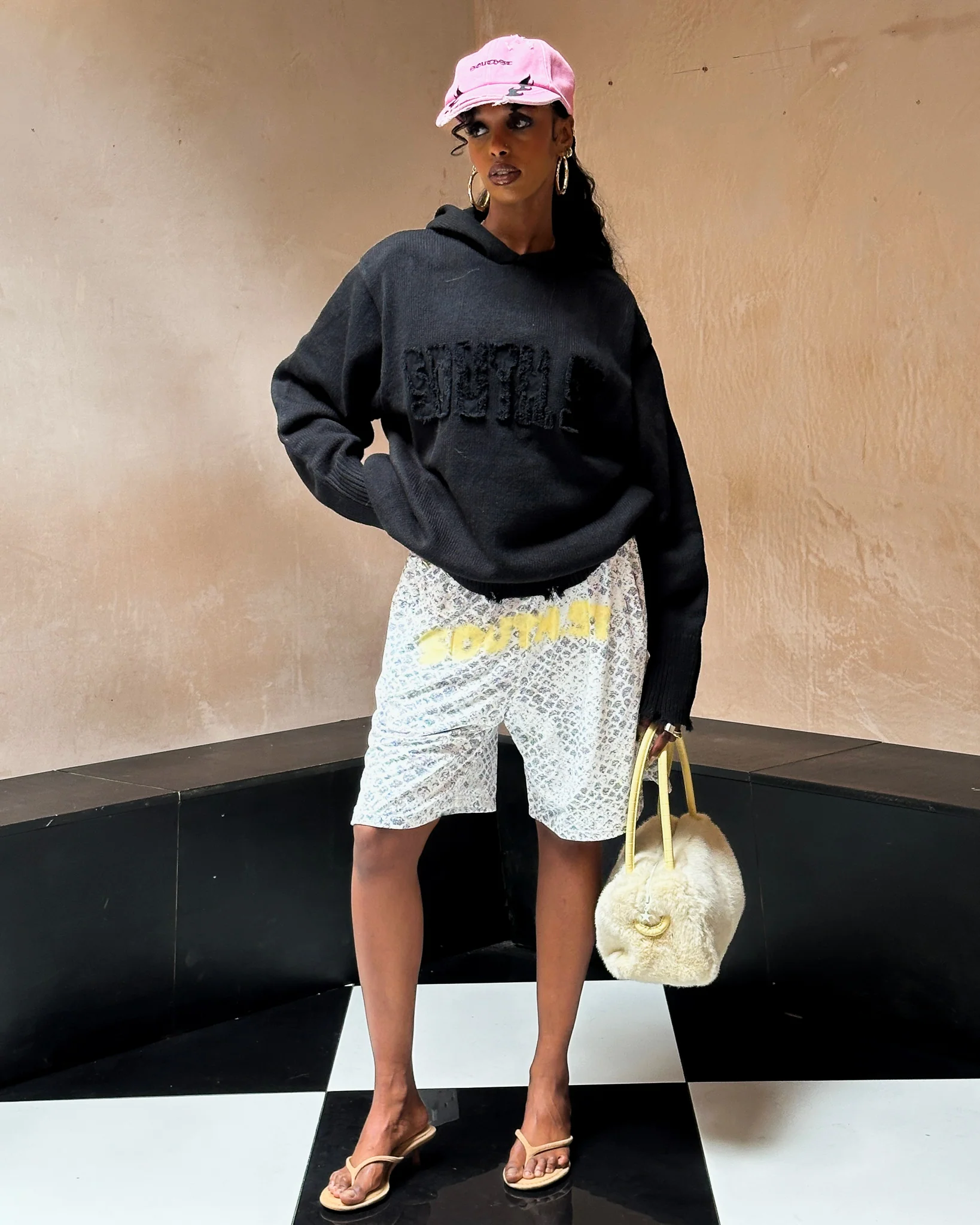 UPLOAD KNIT HOODY Black